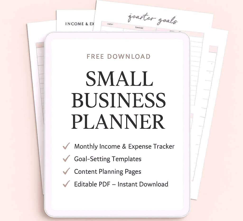 Download your FREE Small Business Planner made just for busy moms juggling business and family — with editable worksheets to plan, track, and thrive.